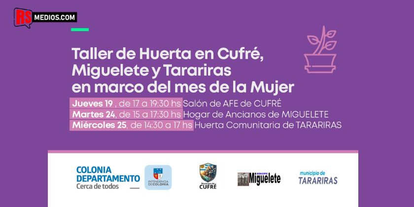 En el marco del Mes de la Mujer, la Intendencia de Colonia llevará adelante una serie de talleres de huerta en distintas localidades del departamento, con el objetivo de promover la participación, el aprendizaje y el fortalecimiento comunitario. La iniciativa es impulsada por la Dirección de Género y Generaciones y forma parte del programa “Manos a la Tierra”, que estará a cargo de Nicolás Vodanovich. Actividad abierta y gratuita Los talleres están dirigidos a mujeres de todas las edades y serán de participación libre y gratuita, contando además con el…