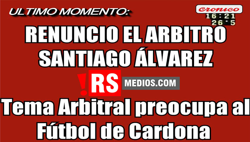 Hola como estas por este medio quiero agradecer a cada uno de ustedes y a la vez comunicarles que renucie a la liga como arbitro por sentirme molesto con los dirigentes colegio y algunos compañeros arbitros ya que desde que paso el incidente en cancha de santa emilia no nos llamo nadie ni para preguntar que paso si estamos bien ect la verdad somos un mal necesario mal que de mi parte no estare mas ya que no se puede arbitrar donde no hay garantias para los arbitros y mucho menos respaldo de los dirijentes un abrazo a todos…Palabras textuales del árbitro Trinitario Santiago Álvarez renunció a la Liga de Cardona como Árbitro.